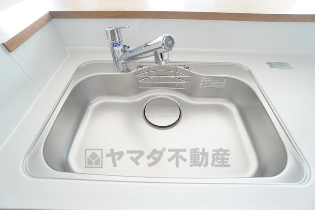 大きなお鍋も楽々洗える幅の広いシンクです^^ステンレスシンクなので簡単にお掃除できますよ。洗剤やスポンジもすっきりできる収納付き。