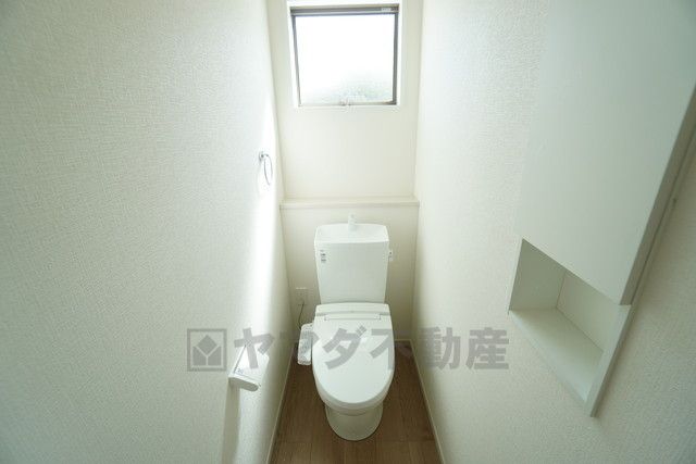 1階2階の2ヶ所にトイレがありますので、忙しい朝にも家族に気を使わず、ゆとりが生まれますね^^ 小窓付きで換気する時に便利です^^