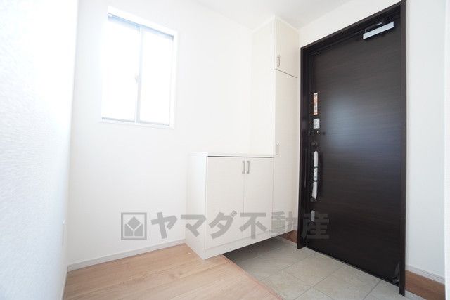 採光も考えられた明るい玄関です。たっぷり収納できるシューズボックス付きなので、家族全員の靴がきれいに整頓できます。