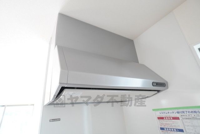 コンロ上には換気扇完備^^すぐ横に小窓が設けられているので、換気扇と合わせてWで換気できます^^