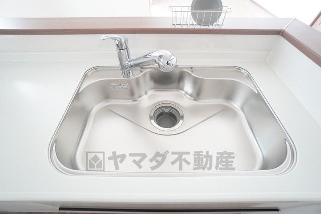 大きなお鍋も楽々洗える幅の広いシンクです^^ステンレスシンクなので簡単にお掃除できますよ。洗剤やスポンジもすっきりできる収納付き