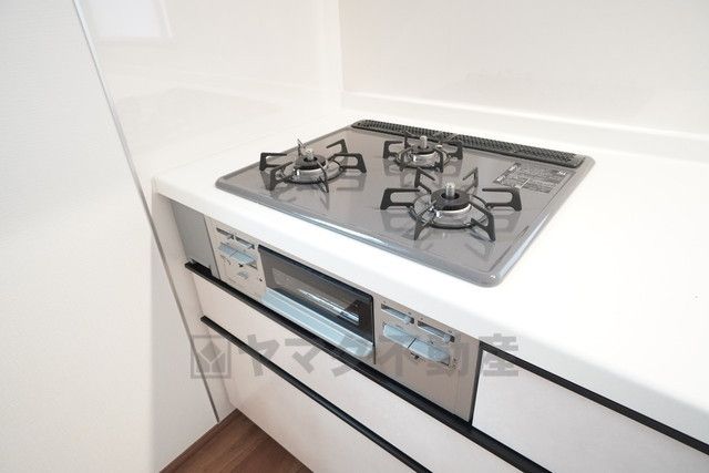 3種類の料理が同時に調理できる、3口ガスコンロ。忙しい夕食の支度時間が短縮できて効率よくお料理が楽しめます。