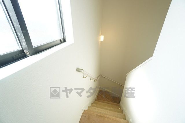 お子様も高齢の方も安心して上り下りができる手摺がついた安心設計です。 階段には小窓を配置しました。日中でも暗くなりがちな階段下が明るくなり安全です