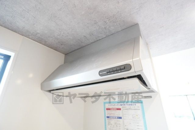 コンロ上には換気扇完備^^ 調理時の蒸気や匂いが換気扇に誘導され、効率的に排煙ができます^^