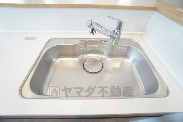大きなお鍋も楽々洗える幅の広いシンクです^^ステンレスシンクなので簡単にお掃除できますよ。洗剤やスポンジもすっきりできる収納付き。