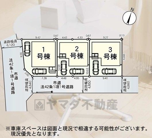 現地(2025年9月)撮影 前面道路:西側約6.12m、南側約4.84m