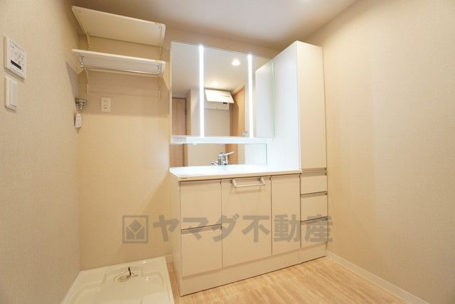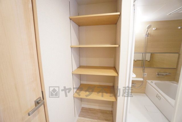 衣類やタオルの収納スペースを確保。 雑然とした洗面室がすっきり片付けやすくなりますし、パジャマや下着を個室に取りに行くという手間も省けます^^