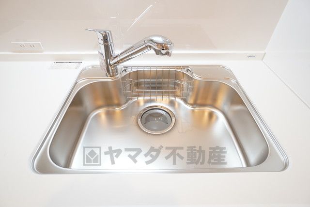 大きなお鍋も楽々洗える幅の広いシンクです^^ステンレスシンクなので簡単にお掃除できますよ。洗剤やスポンジもすっきりできる収納付き。