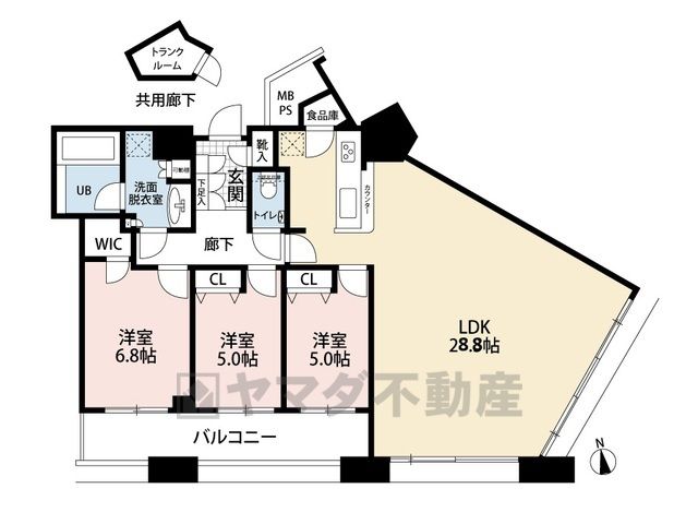 LDK28.8畳、洋6.8畳、洋5畳 |