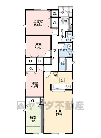 LDK17畳、和5畳、洋6.6畳、洋5.2畳、洋4.8畳 |