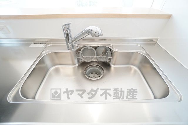 大きなお鍋も楽々洗える幅の広いシンクです^^ステンレスシンクなので簡単にお掃除できますよ。洗剤やスポンジもすっきりできる収納付き。