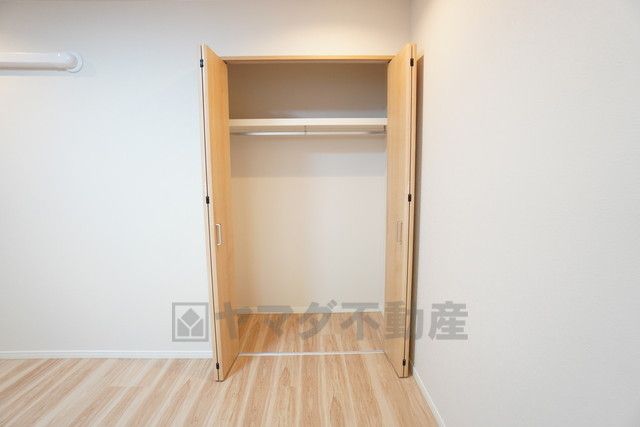 洋室にはハンガーパイプ付きのクローゼットが設けられています。たっぷり収納できるので衣替えの心配もいりませんね^^