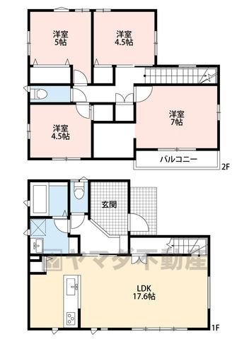 LDK17.6畳(1F)、洋4.5畳(2F)、洋5畳(2F)、洋7畳(2F) |