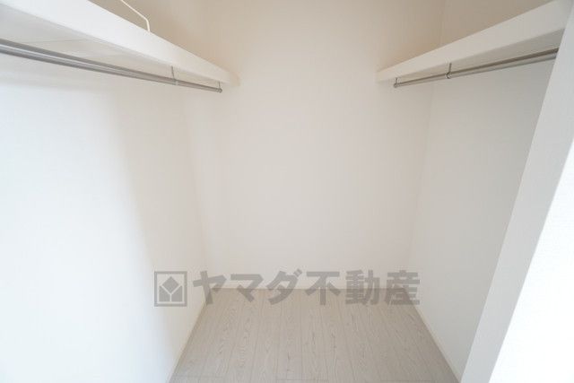洋室にはハンガーパイプ付きのウォークインクローゼットが設けられています。たっぷり収納できるので衣替えの心配もいりませんね^^
