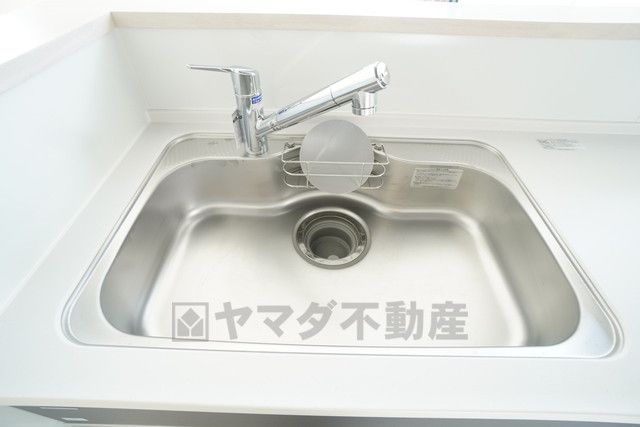 大きなお鍋も楽々洗える幅の広いシンクです^^ステンレスシンクなので簡単にお掃除できますよ。洗剤やスポンジもすっきりできる収納付き。