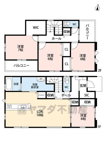 LDK18畳(1F)、洋6畳(1F)、洋7畳(2F)、洋6畳(2F) |