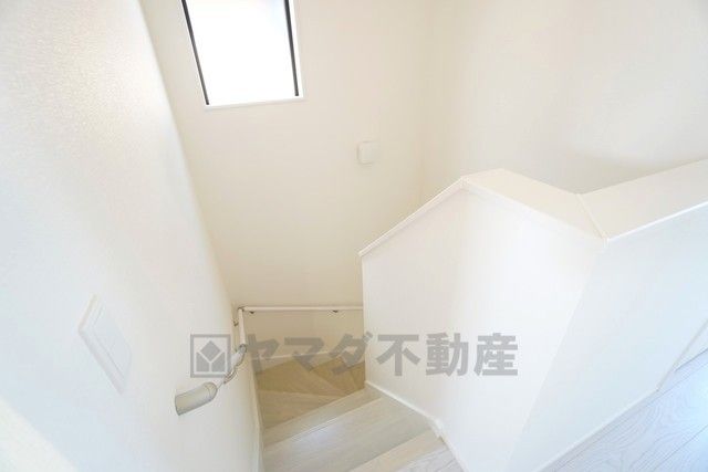 お子様も高齢の方も安心して上り下りができる手摺がついた安心設計です。階段には小窓を配置しました。日中でも暗くなりがちな階段下が明るくなり安全ですね^^