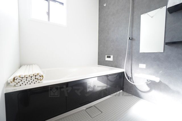1日の疲れを癒すくつろぎのバスルーム。足を伸ばしてもゆったりと入れるサイズです。お子様と一緒にお風呂に入っても狭くないですね^^