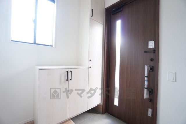 採光も考えられた明るい玄関です。たっぷり収納できるシューズボックス付きなので、家族全員の靴がきれいに整頓できます。