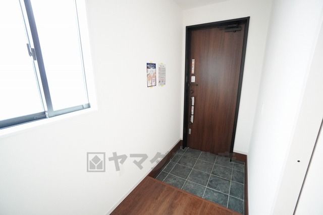 採光も考えられた明るい玄関です。 玄関扉向かいに、たっぷり収納できるシューズボックス付きなので、家族全員の靴がきれいに整頓できます。