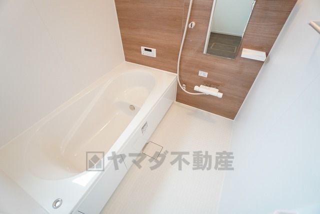 1日の疲れを癒すくつろぎのバスルーム。足を伸ばしてもゆったりと入れるサイズです。お子様と一緒にお風呂に入っても狭くないですね^^