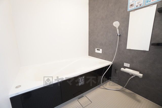 1日の疲れを癒すくつろぎのバスルーム。足を伸ばしてもゆったりと入れるサイズです。お子様と一緒にお風呂に入っても狭くないですね^^