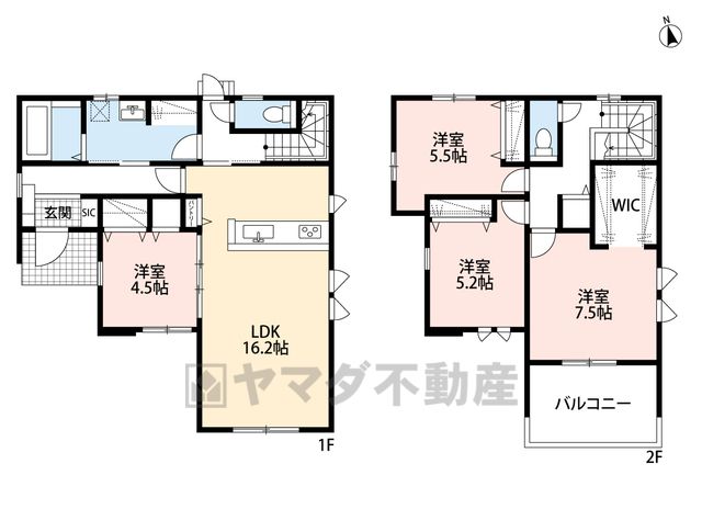 | 間取り詳細 | LDK16.2畳(1F)、洋4.5畳(1F)、洋7.5畳(2F)、洋5.5畳(2F)、洋5.2畳(2F) | 都市計画 | 市街化区域 |