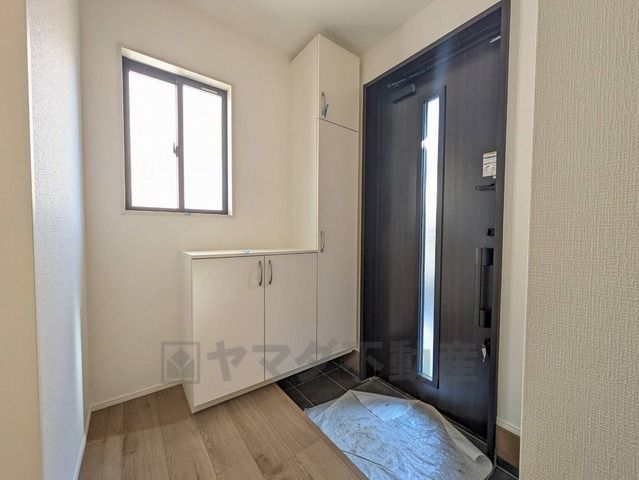 採光も考えられた明るい玄関です。たっぷり収納できるシューズボックス付きなので、家族全員の靴がきれいに整頓できます。
