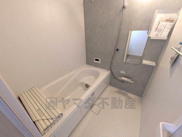 1日の疲れを癒すくつろぎのバスルーム。足を伸ばしてもゆったりと入れるサイズです。お子様と一緒にお風呂に入っても狭くないですね^^