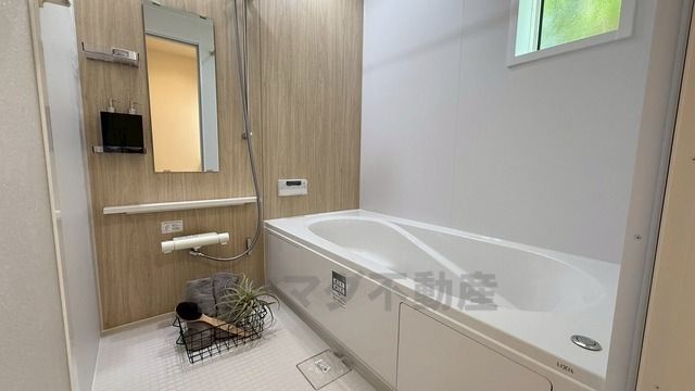 1日の疲れを癒すくつろぎのバスルーム。足を伸ばしてもゆったりと入れるサイズです。お子様と一緒にお風呂に入っても狭くないですね^^