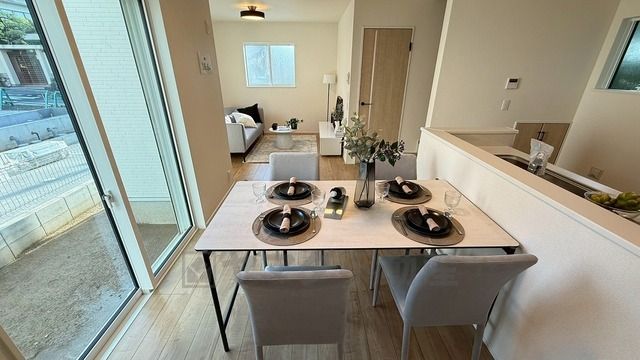 大きな掃き出し窓のあるリビングは、陽光あふれる明るい空間です。ゆったりと寛げる憩いの場となりそうです。