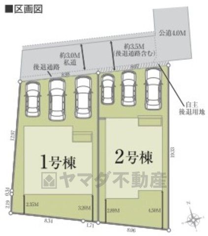 駐車スペースはゆとりある3台分を確保。(車種により異なる)マイカー用に、お客さま用に、余裕を持ってご利用いただけます。住人以外の車の進入も少なく、小さなお子様を持つご家庭にも安心です^^
