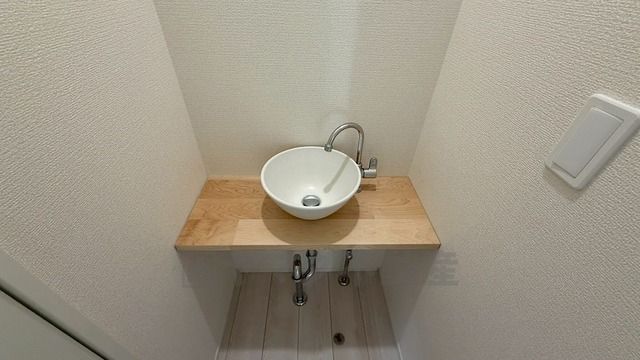 2階のトイレ横には手洗いスペースを完備^^2階のお掃除のときや加湿器を使う時、観葉植物に水をあげる時など動線が短くなり便利ですね^^