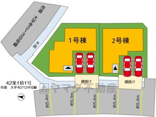 前面道路は西側約5.4m~5.7mの公道に面しています^^