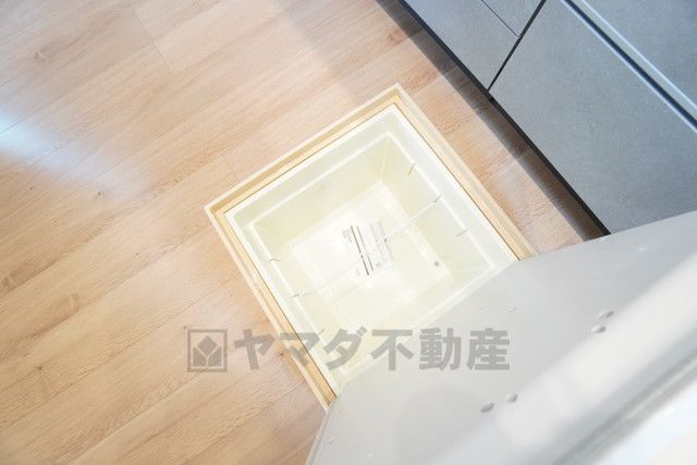 キッチンに床下収納があります。長期保存ができるもの、調理器具、防災グッズを入れておくのもいいですね。