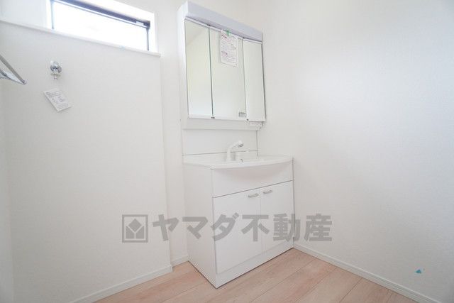 三面鏡裏収納付き洗面化粧台です^^ 歯磨きセットやスキンケア用品などの収納に便利ですね。