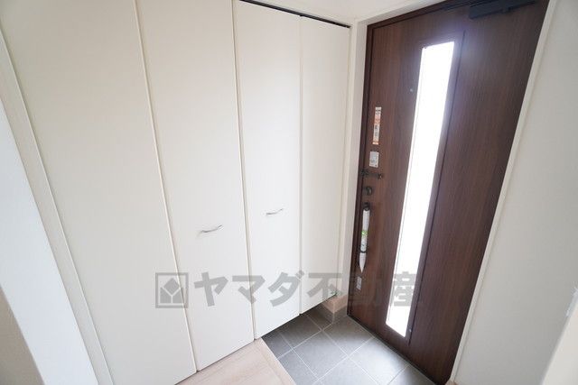 採光も考えられた明るい玄関です。たっぷり収納できるシューズボックス付きなので、家族全員の靴がきれいに整頓できます。