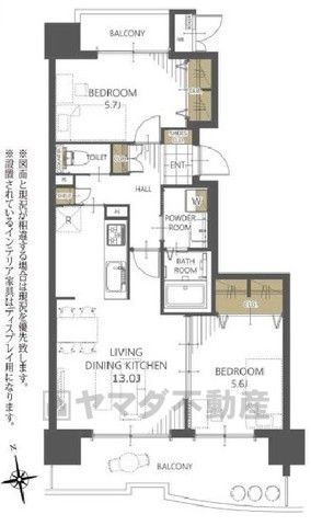 LDK13畳、洋5.6畳、洋5.6畳 |
