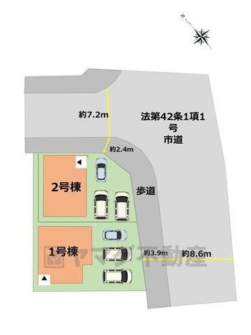 前面道路は北東側約7.2m、南東側約8.6mの公道に面しています^^