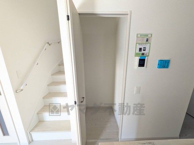 キッチン横には広々パントリー付き^^ パントリー横にはリビング階段を採用。 顔を合わせる時間が増えるので、ご家族とのコミュニケーションがとりやすく距離がグッと縮まりそうですね^^