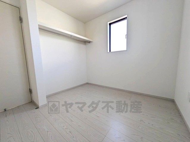 2階6帖洋室。ハンガーパイプ付きのウォークインクローゼットが設けられています。たっぷり収納できるので衣替えの心配もいりませんね^^