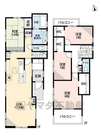 LDK17.5畳(1F)、和5.6畳(1F)、洋8畳(2F)、洋5畳(2F) |