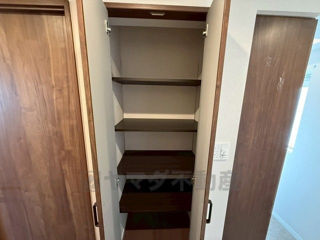 玄関にはシューズクロークの他に可動棚収納も設けられています。共有スペースにあるので、非常時にもすぐ取り出せる防災グッズや備蓄品の収納などにおススメ^^