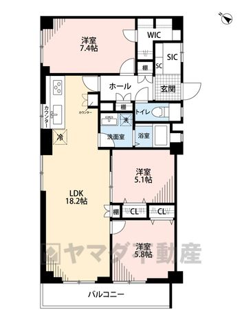 LDK18.2畳、洋7.4畳、洋5.8畳、洋5.1畳 |