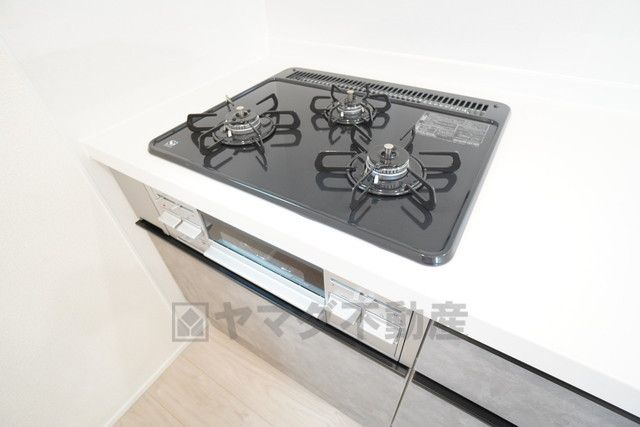 3種類の料理が同時に調理できる、3口ガスコンロ。忙しい夕食の支度時間が短縮できて効率よくお料理が楽しめます。