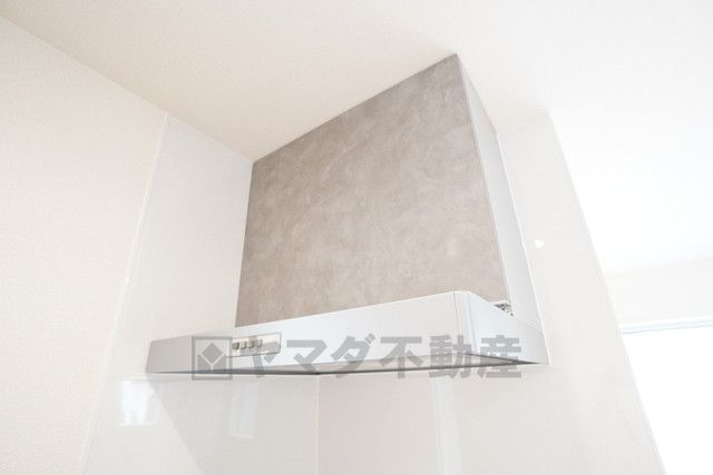コンロ上には換気扇完備^^調理時の蒸気や匂いが換気扇に誘導され、効率的に排煙ができます^^