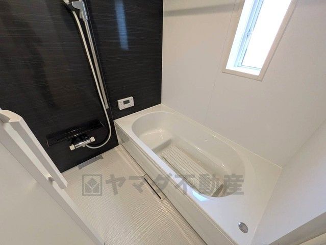 1日の疲れを癒すくつろぎのバスルーム。足を伸ばしてもゆったりと入れるサイズです。お子様と一緒にお風呂に入っても狭くないですね^^
