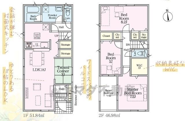 LDK18畳(1F)、洋8.2畳(2F)、洋7.5畳(2F)、洋5畳(2F) |
