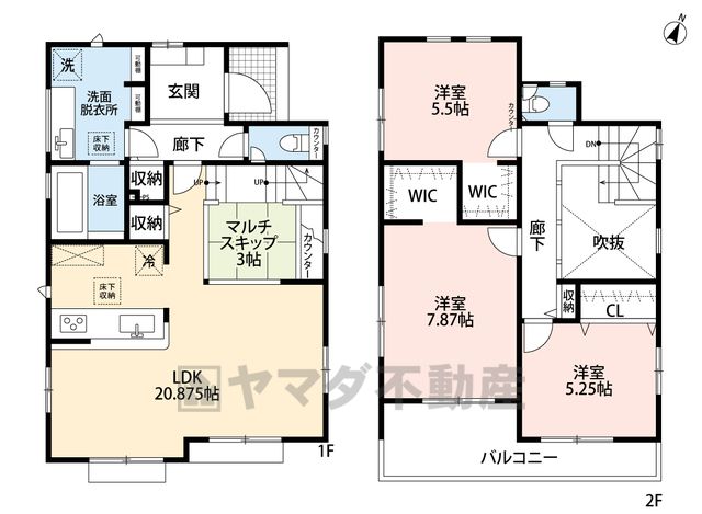 LDK20.8畳(1F)、洋7.8畳(2F)、洋5.5畳(2F)、洋5.2畳(2F) |