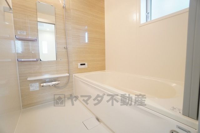 1日の疲れを癒すくつろぎのバスルーム。足を伸ばしてもゆったりと入れるサイズです。お子様と一緒にお風呂に入っても狭くないですね^^